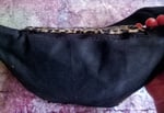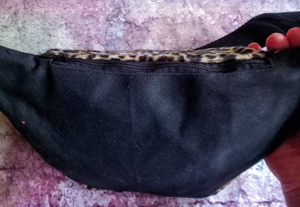 It's made out of leopard faux fur, denim offcuts and it has cotton canvas lining.