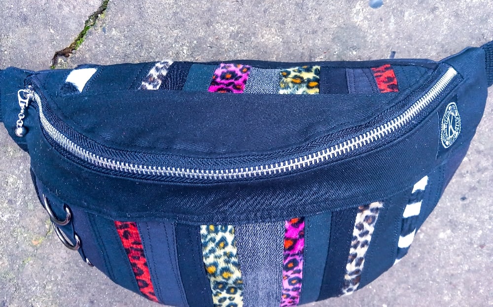 This bag is made out of leftover fabric scraps and has beautiful details from patterns and textures.
