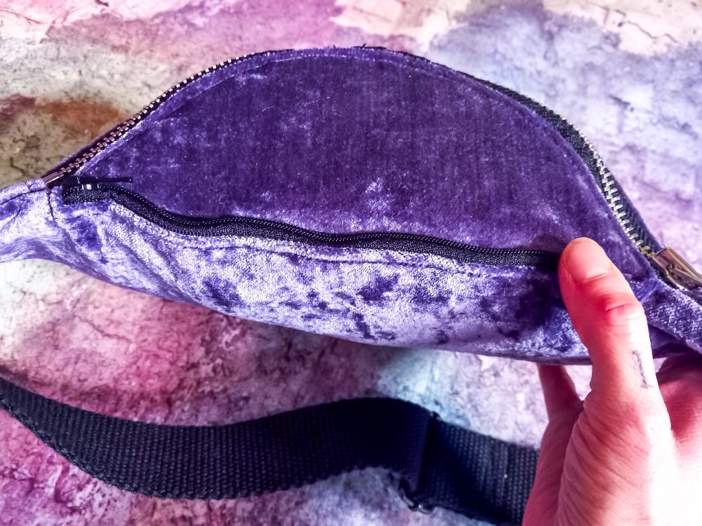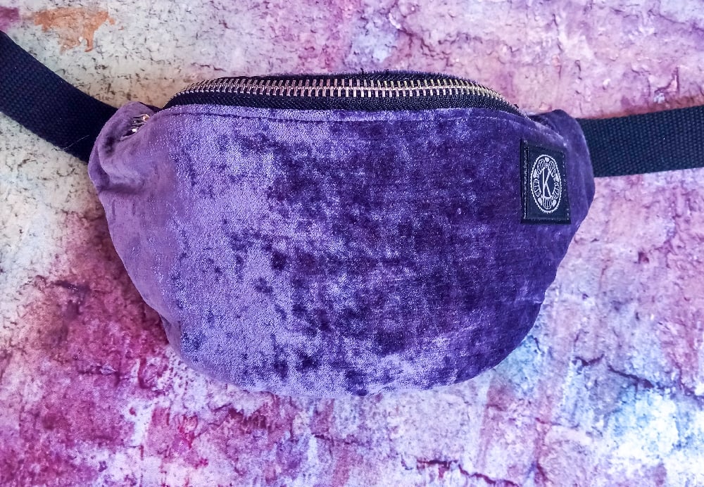 It's made out of beautiful vintage purple plush velvet and it has cotton canvas lining.