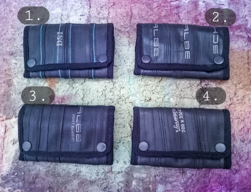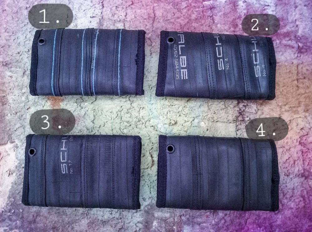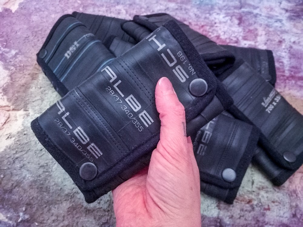 Bike inner tubes are donated from local bike shops who repair broken bike tyres. Instead of ending up in the landfill this way they get a second life and we can save the planet even a tiny bit!